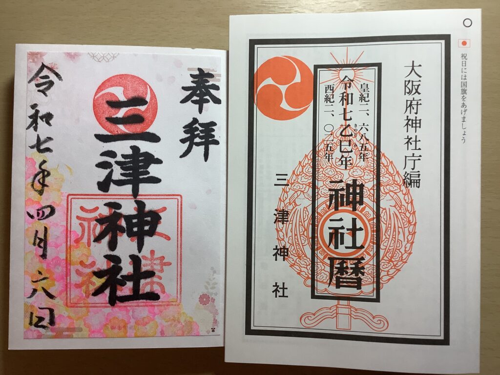三津神社は徒歩5分で駅から近いです。心願成就のコースになります。御朱印が綺麗です。