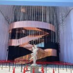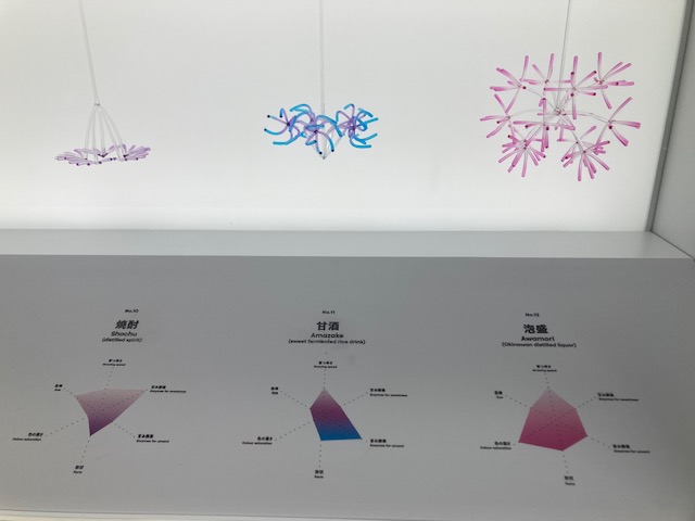 発酵で発光?別エリアではゴミを発酵させるタンクで躍動する微生物をイメージした光のカーテンが何とも幻想的でした。