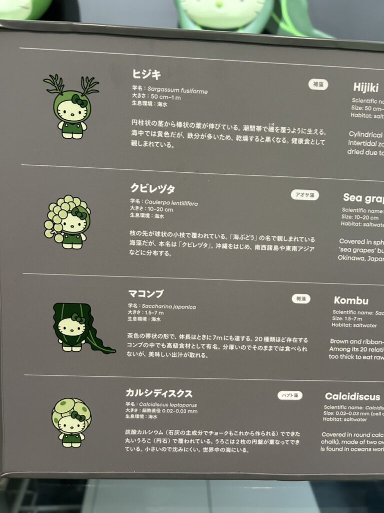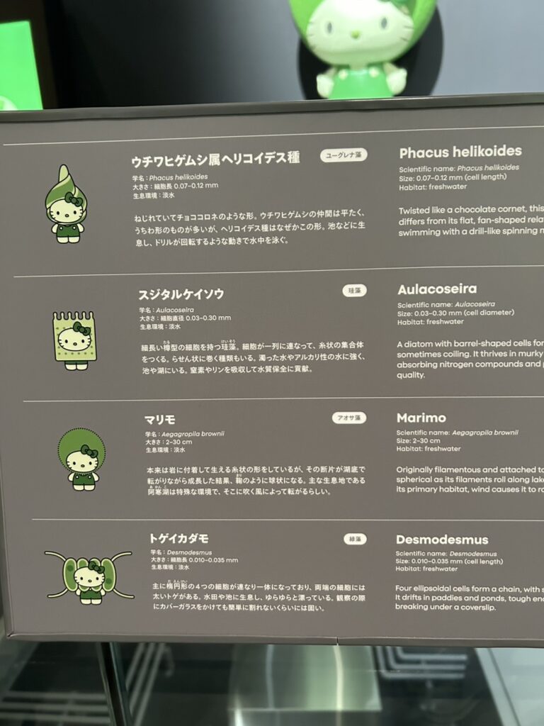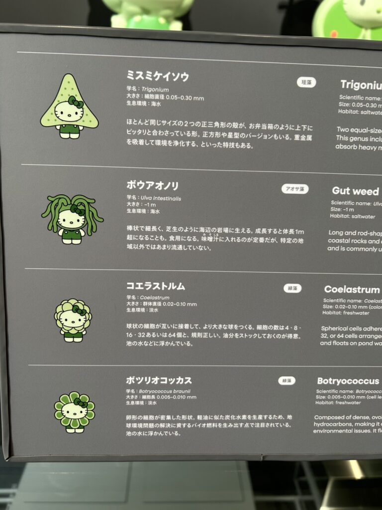 そしてFarmエリアでは藻類について展示がされていました。32種類の藻類をキティちゃんで表現