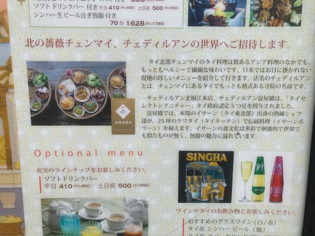 90分制。タイ北部の料理です。タイ政府から認定された5つ星のお店ですよ。これは美味しいに違いない。