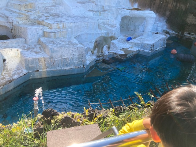 北極熊です。もっと白いのかと思っていたら、意外とグレーに近い色だった。汚れ?